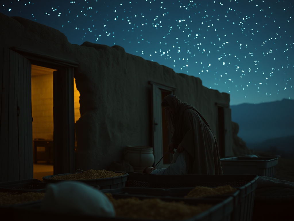 Joseph: This was not the way it was supposed to be. On my wedding night, I was to be the man of the hour, honored, celebrated. I was supposed to be serenaded by the wedding party outside my house. Then we were supposed to process through the town singing songs and laughing and joking, and then we’d arrive at Mary’s house. She would come out, radiant, beautiful, perfect. We’d join hands and parade joyfully back to my house, the toast of the town, and then the feast. We would laugh and dance and eat until our stomachs and hearts were full to bursting. Then, we would go to the marriage bed, pure and uncomplicated, and consummate the joy of God’s gift of marriage.