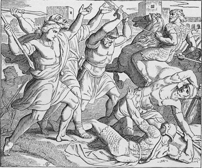 The priest took the dead body of his wife, and cut it up, and sent the pieces to the twelve tribes of Israel as a graphic way of letting the whole nation know what had taken place in Gibeah. Eleven of the tribes assembled – the tribe of Benjamin did not come, and Gibeah was in their territory. The other tribes demanded that the tribe of Benjamin deliver the residents of Gibeah to the rest of the nation so that justice could be done. Benjamin refused, and fought a war with the other tribes rather than punish the evil-doers. Naturally, there was a great deal of outrage against the tribe of Benjamin. The other Israelites destroyed almost the entire tribe, which numbered about 30,000 adult men, plus women and children – possibly more than 120,000 people altogether. The only survivors were six hundred Benjamite warriors who escaped into the hills. Everyone else – including women and children, had been killed.