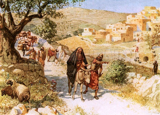 David, fleeing from Jerusalem, is cursed by Shimei.  William Hole, Old Testament History (Eyre and Spottiswoode, c 1925 )